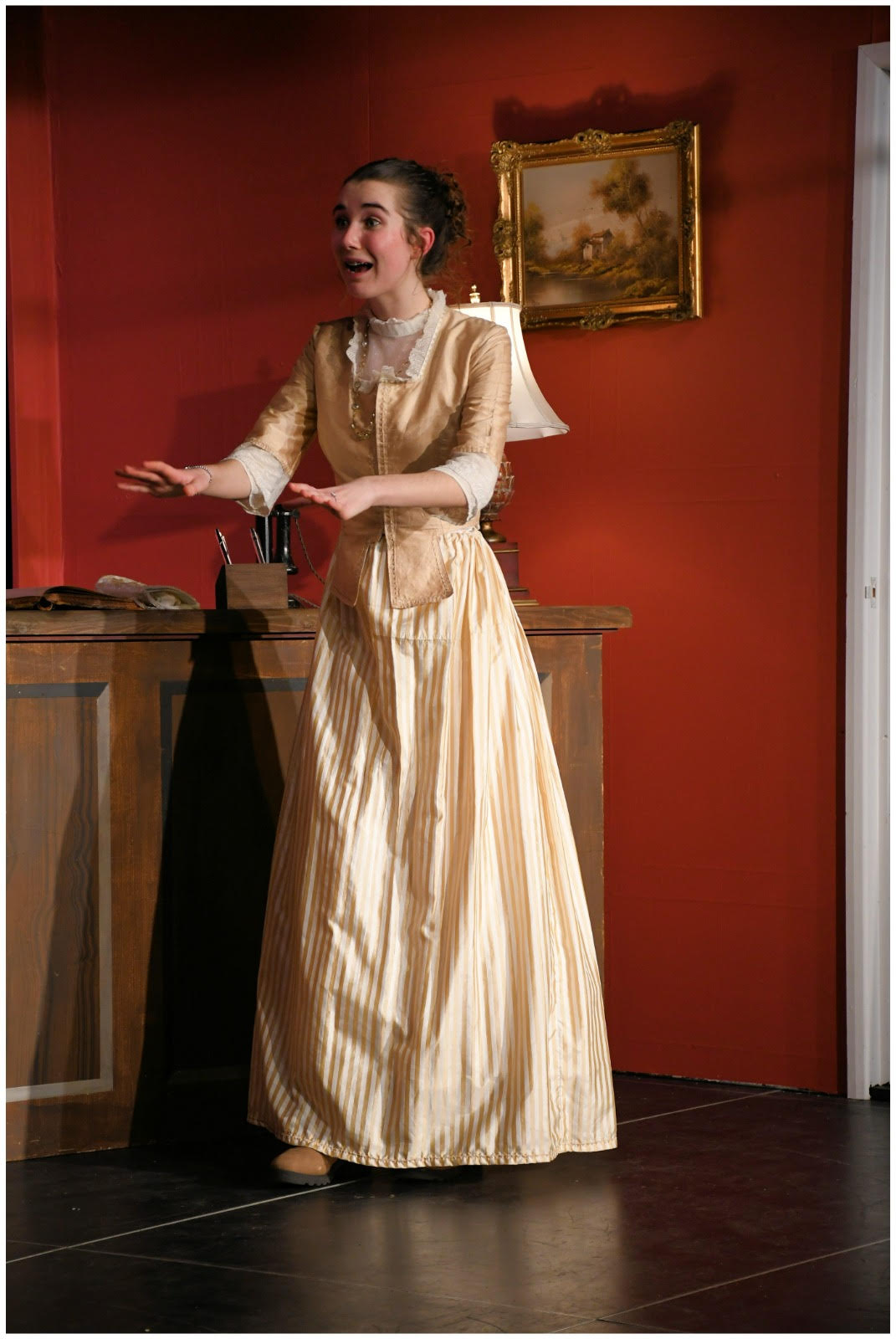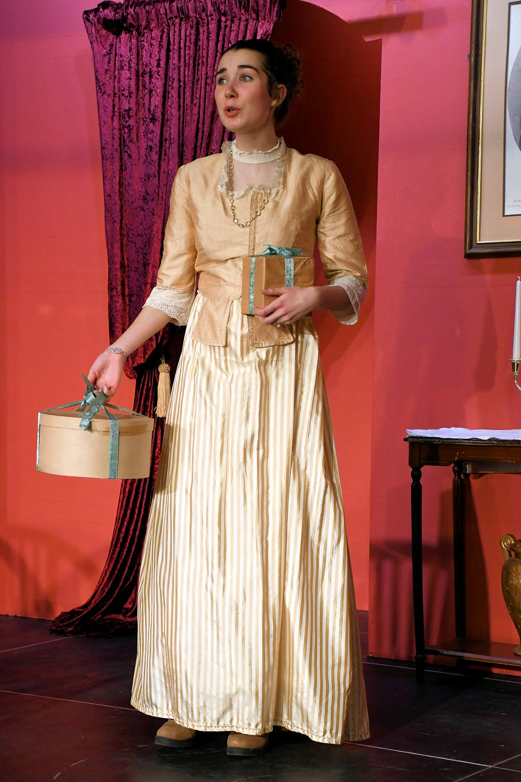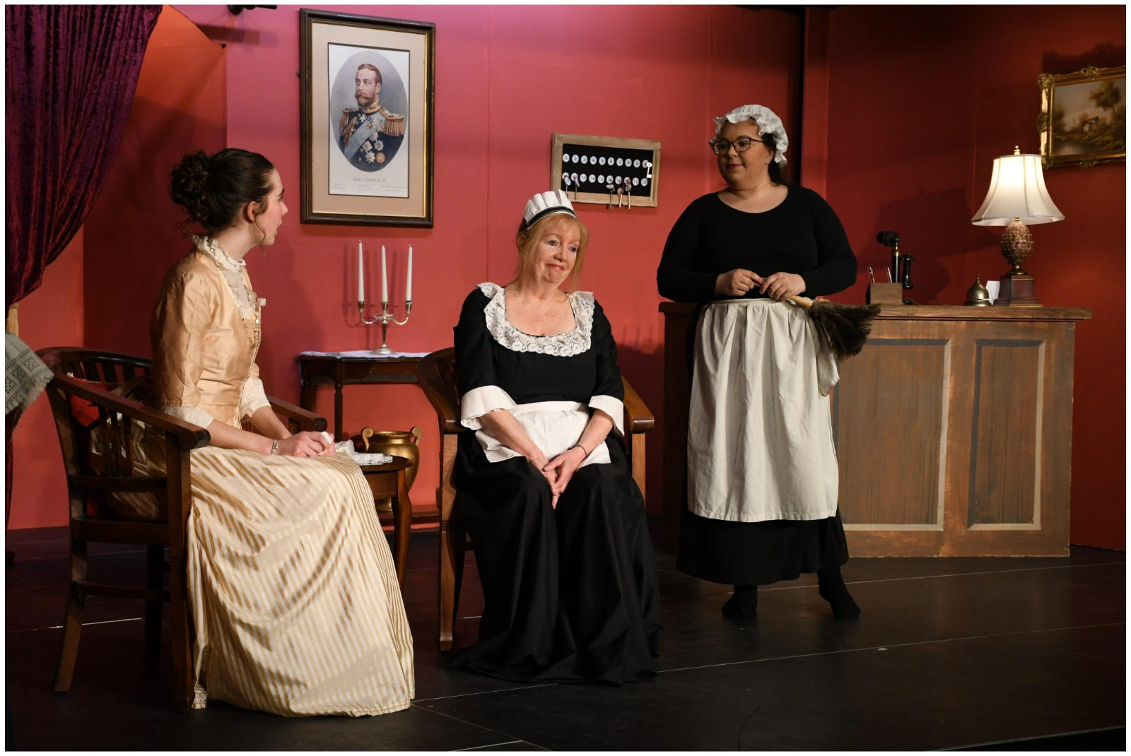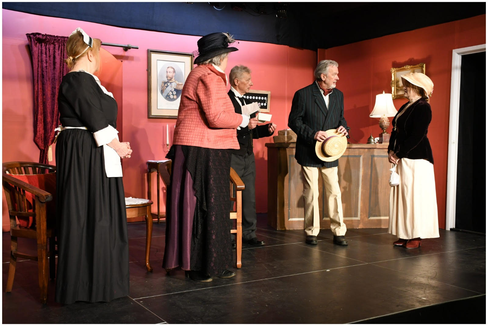 The spring Boxford Drama Group production this year was Elaine Horne’s play, ‘Now and Then’, a 2-act comedy spanning 100 years in the fictional Bailey’s Hotel in Bognor Regis. In the first act, set in 1910 – a period of British history which saw huge social and cultural upheaval, the management of the hotel wrestles with the profound changes to class and gender-based conventions. Running deep in the undercurrent of the very funny dialogue between the staff and guests, Elaine’s layered script deals with how female attitudes to patriarchal rule began to change with the Suffragette movement gaining momentum, as well as how a blurring of the borders between social strata during George V’s reign meant previously distinct corners of society started to chafe against one-another.