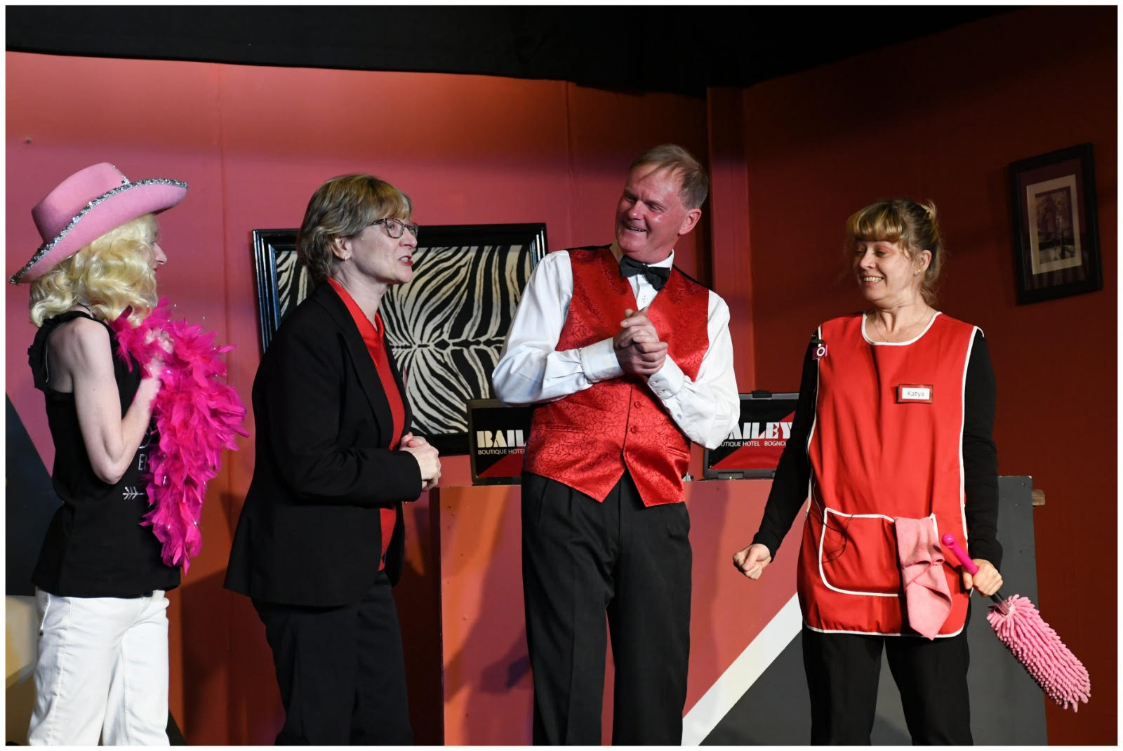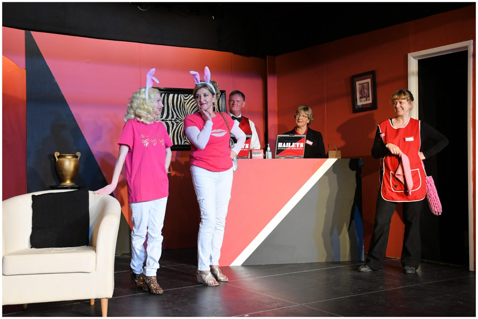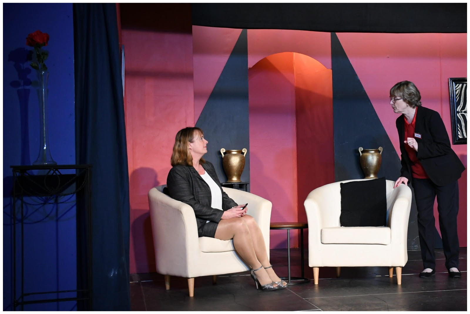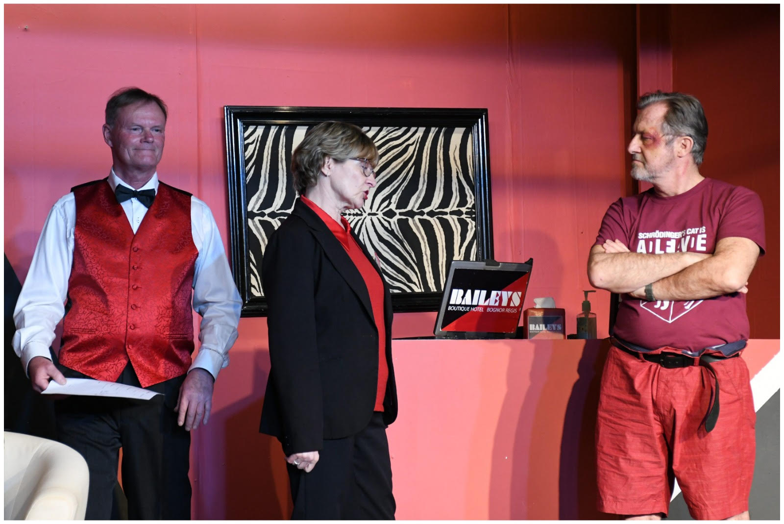 Mike Keith, as the hotel manager Mr. Swinton, did a great job in conveying the confusion of the establishment at this time in attempting to uphold traditional values and yet barely keeping the frayed edges together. Boxford Drama Group newcomers Jane Jeffries and Ellie Chamberlain, as dysfunctional mother and daughter Clarissa and Amelia Pinkerton-Smythe were the stars of the show with some fantastic characterisation and nuanced performances and long may they tread the BDG boards.