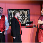 Even with these layers of subtext and social commentary running throughout, Elaine Horne’s play was genuinely funny with both acts running a sub-plot of doomed-to-be-uncovered infidelities – Frances Korabik and James Tolputt in Act 1, and Alison ‘Wonder Woman’ Barlow and Peter ‘Batman’ Korabik in Act 2 as the hapless couples.