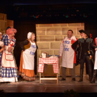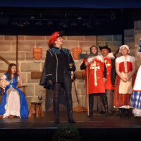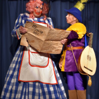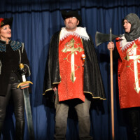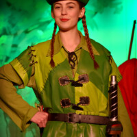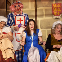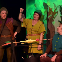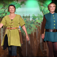 Set in Nottingham Castle and Robin’s encampment in Sherwood Forest, this was yet another in the long line of Pantomimes, written in house by a member of Boxford Drama Group. Written and Directed by David Phillips this years offering achieved the usual high standard that can be expected of a BDG production. One of the delights of traditional pantomime is that often the characters have to ad lib and react to situations not always in the script, which was the case for the opening of his year’s pantomime Robin Hood. The odd opening-night glitch, which the cast dealt with admirably, only served to add much to an already delightful rendition of the Robin Hood story. By the second night and playing to a capacity audience everything was slick and just as the producer had expected. I was there on the third night when the performers were also reacting well with audience participation, and comments. That’s what Panto is all about. Central to this story was Nanny Nora, the pantomime dame, wonderfully played once again by Joe Barrett, who has developed a real forte for this type of performance and so knows how to play every nuance and subtly to perfection, continually interacting with the audience. Nanny Nora’s mission is to help her ward, Lady Marion (Ruby Robinson), avoid the fate of marrying the evil Sheriff (Georgie Waterson) and instead win her the hand in marriage of Robin Hood (Beth Molloy). Well thats it in a nutshell. We had one new actor on the stage, Beth Molloy who gave a strong performance as a Handsome Robin and Derek Butler was encouraged to come out of retirement, to be a splendid Friar Tuck. There was also a surprise appearance at the end of the Panto by Sean Connery (or was it Nick Elliott) as King Richard who finally made Nanny Nora’s dreams come true. Everyone turned in splendid performances including the catering team who gave us our first taste of Turkey this season.